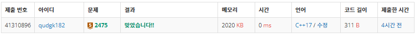 첫째 줄에 검증수를 출력한다.