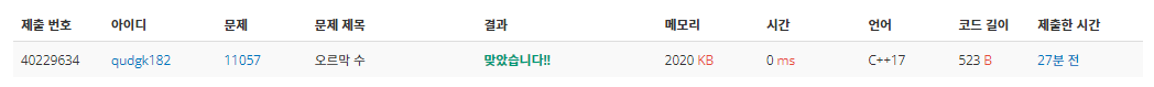 수의 길이 N이 주어졌을 때, 오르막 수의 개수를 구하는 프로그램을 작성하시오. 수는 0으로 시작할 수 있다.