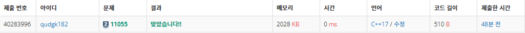 3. dp 배열에는 입력 받은 배열로 초기화 해준 뒤 점점 증가 하는 수열 인지와 지금 까지 더한 수열이 초기화 한 수 보다 큰지를 비교하여 dp 배열에 넣어 주었습니다. 조건문(arr[j] < arr[i] && dp[i] < dp[j] + arr[i])을 이용하였습니다.