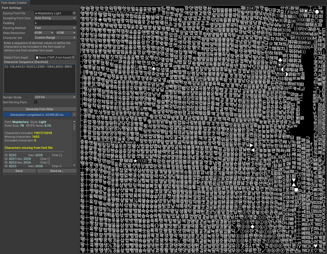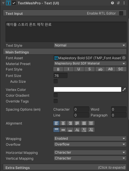 참고 : https://docs.unity3d.com/Packages/com.unity.textmeshpro@4.0/manual/FontAssetsCreator.html