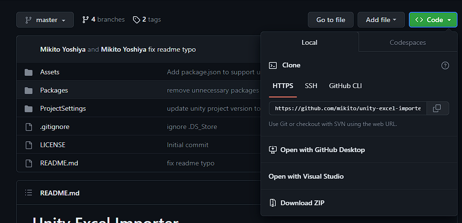 excel importer를 사용하여하는 방법인데요. 안에 git을 다운로드하고 프로젝트 에셋 폴더 안에 넣으면 됩니다. 안에 설명도 잘 되어있어 git만 보셔도 따라 하기 쉽습니다.